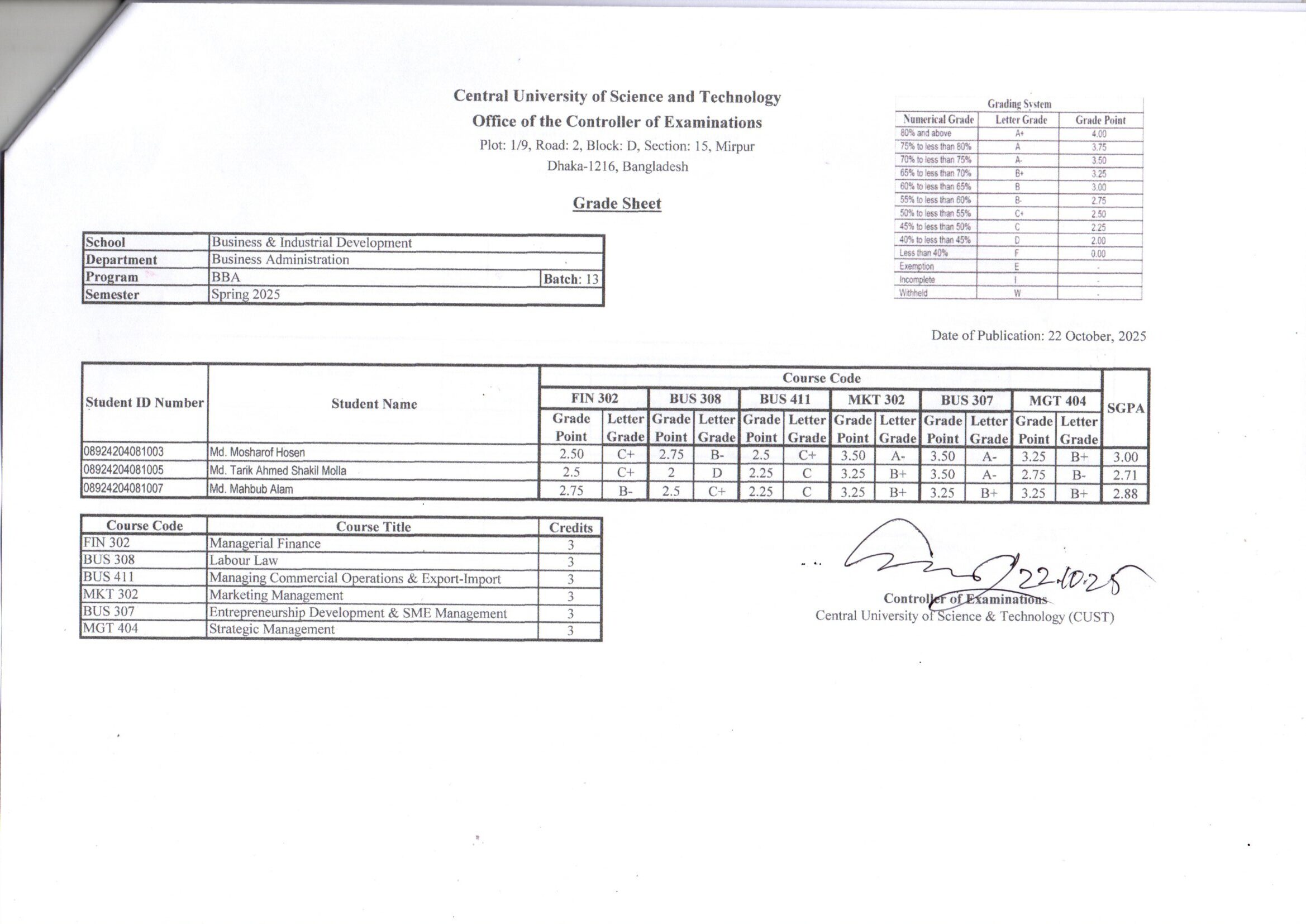 BBA, Spring Semester 2025 (Batch 4) (Batch 7) (Batch 8) (Batch 9) (Batch 10) (Batch 11) (Batch 12) (Batch 13)