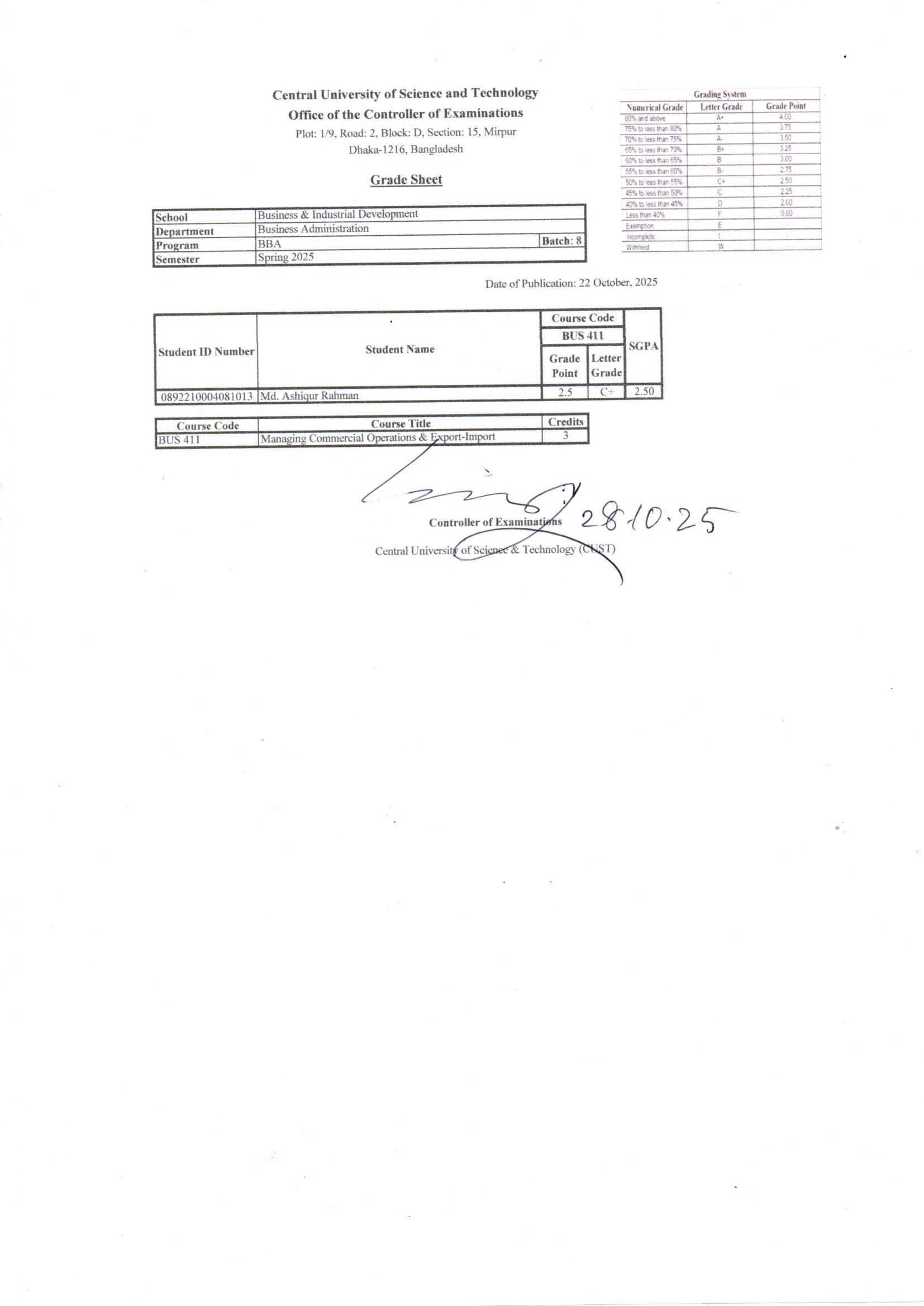 BBA, Spring Semester 2025 (Batch 4) (Batch 7) (Batch 8 – Revised) (Batch 9) (Batch 10) (Batch 11) (Batch 12) (Batch 13)