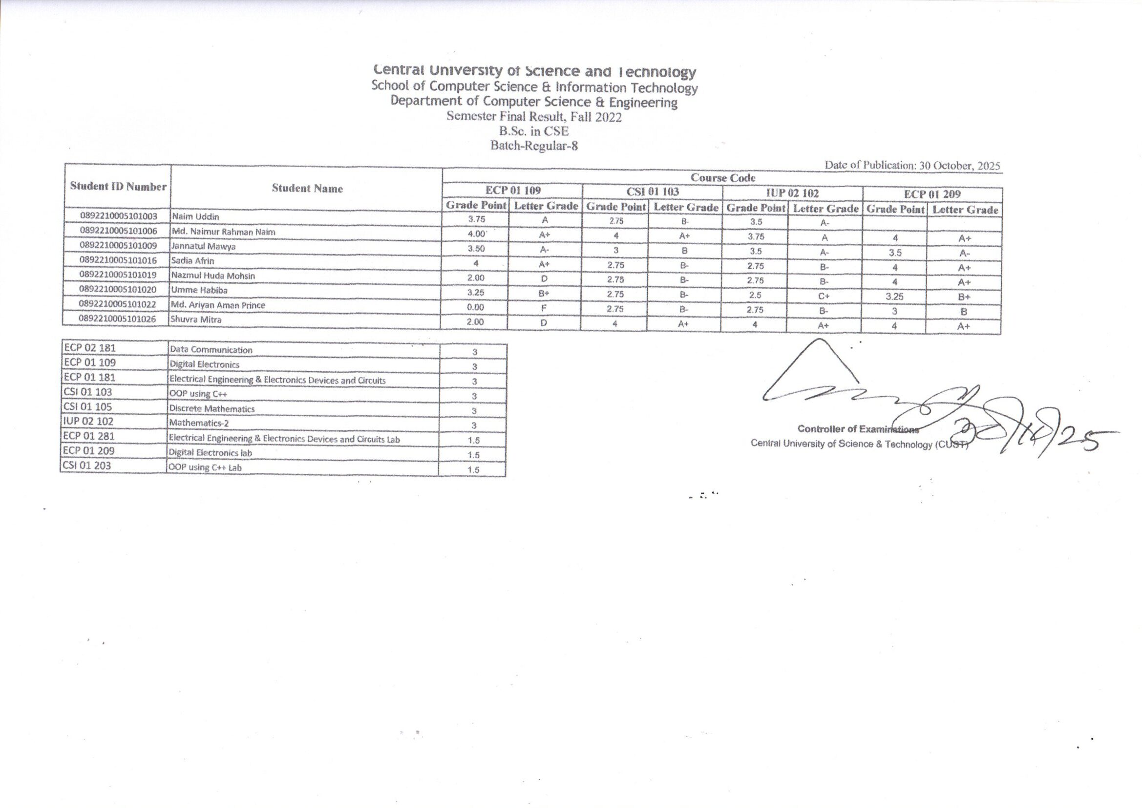 CSE, Fall Semester 2024 (4 Regular) (5 Diploma) (5 Regular) (8 Regular – Revised) (9 Regular) (9 Diploma) (10 Regular) (10 Diploma) (11 Diploma – Revised) (12 Diploma) (13 Diploma)