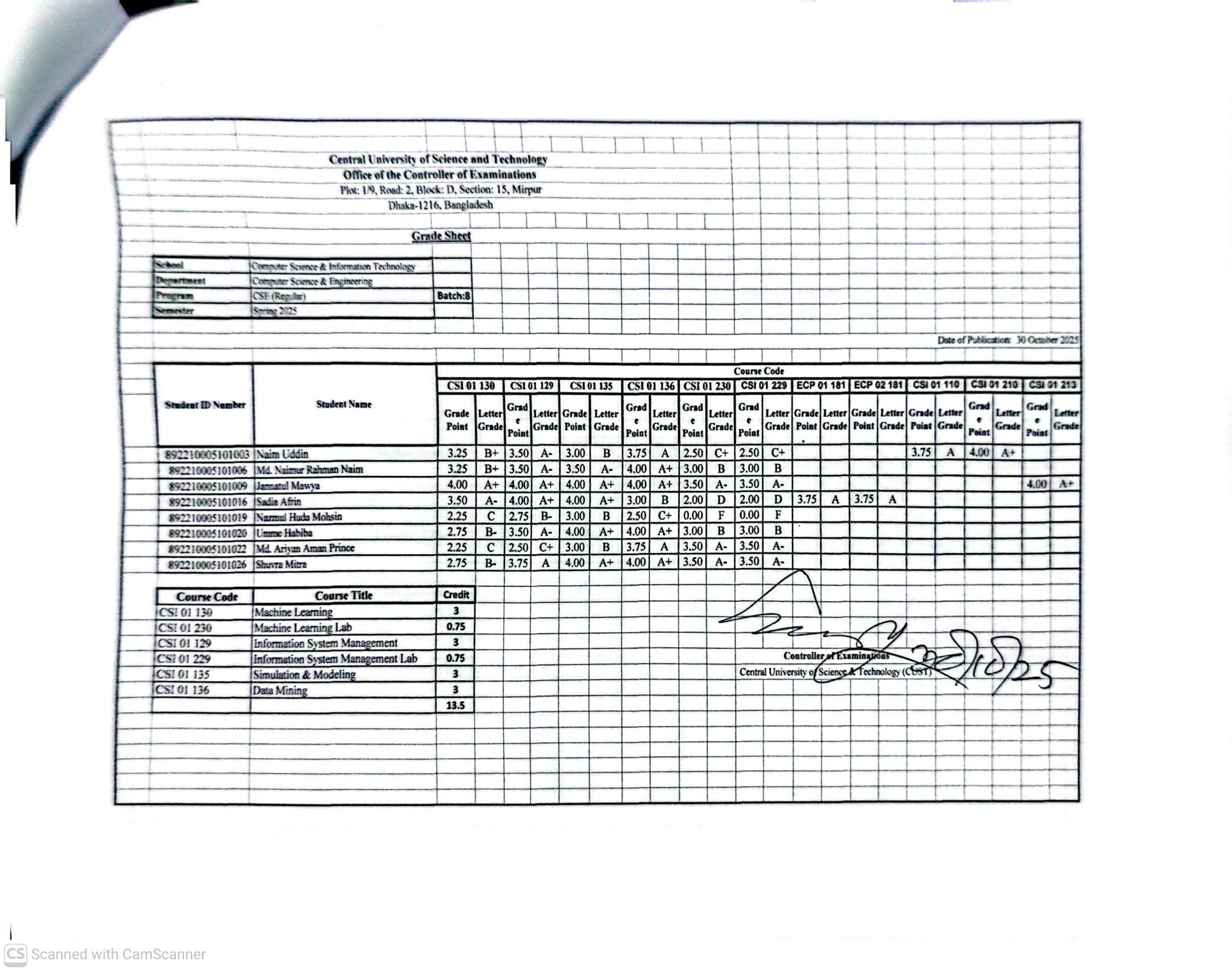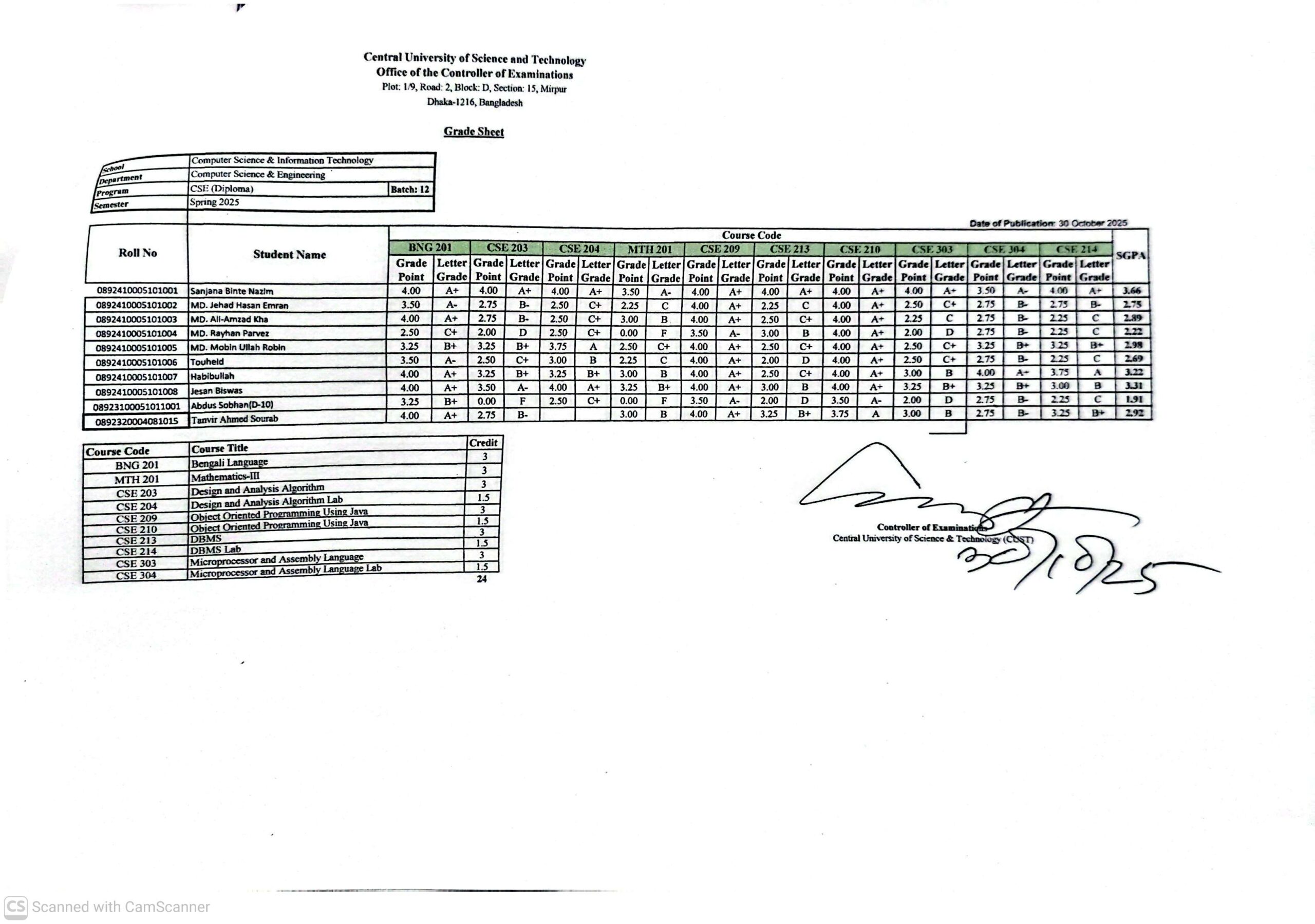 CSE, Spring Semester 2025 (Regular 5 – 1 & 2) (8 Regular) (9 Regular) (9 Diploma) (10 Regular) (10 Diploma) (11 Diploma) (12 Diploma – Revised) (13 Diploma)