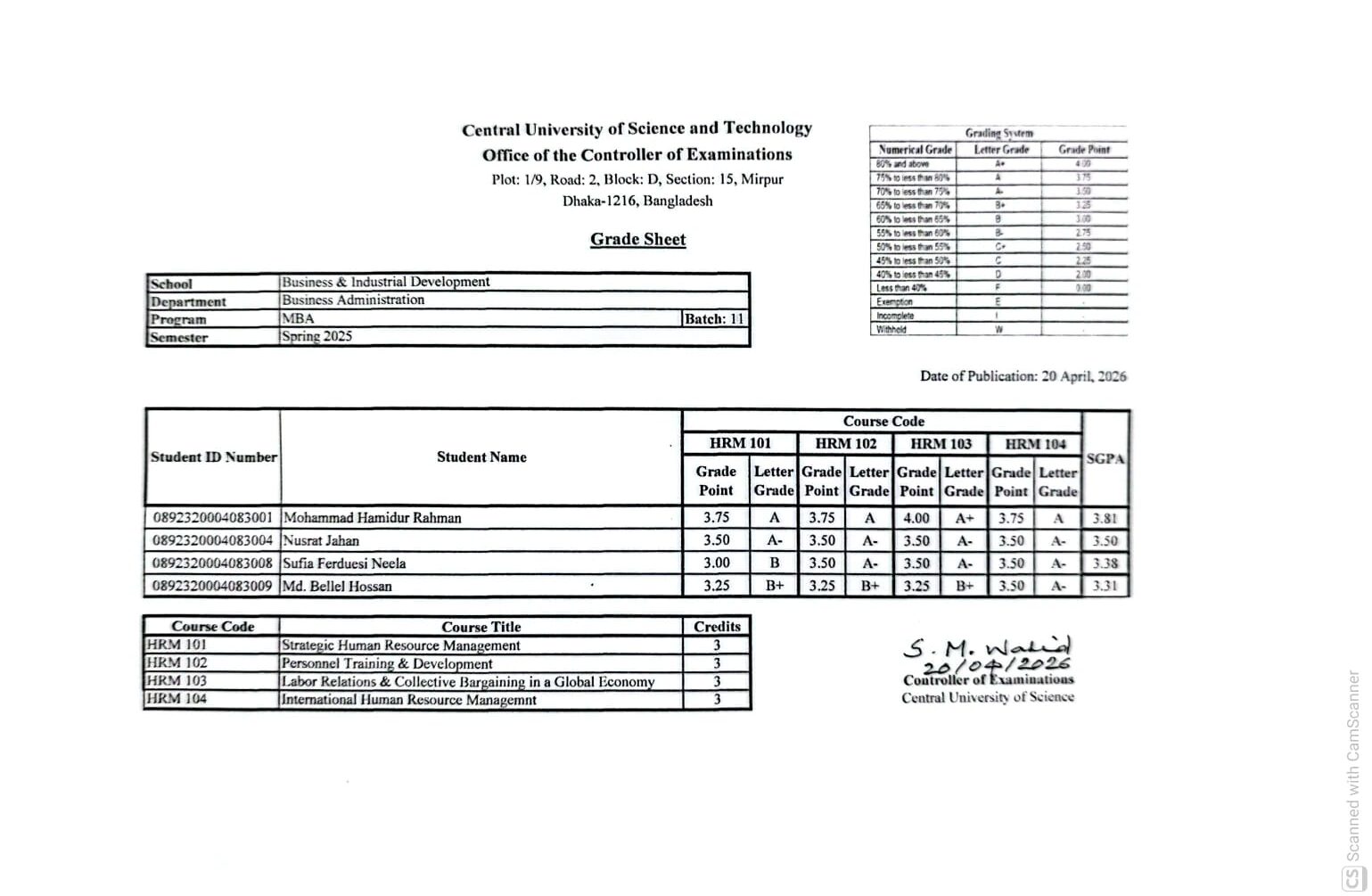 BBA, Spring Semester 2025 (Batch 4) (Batch 7) (Batch 8 – Revised) (Batch 9) (Batch 10) (Batch 11) (Batch 12)