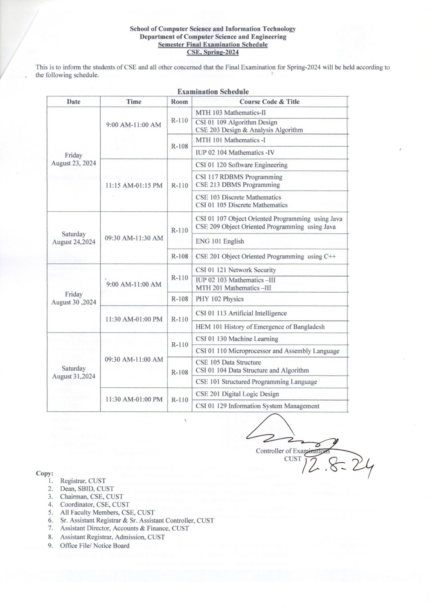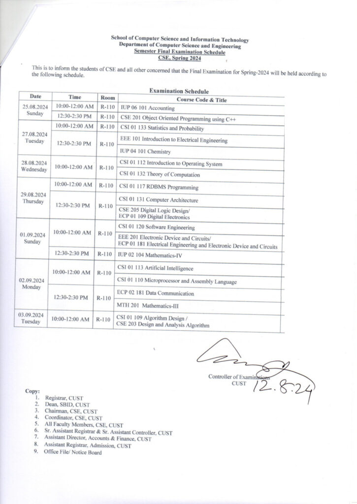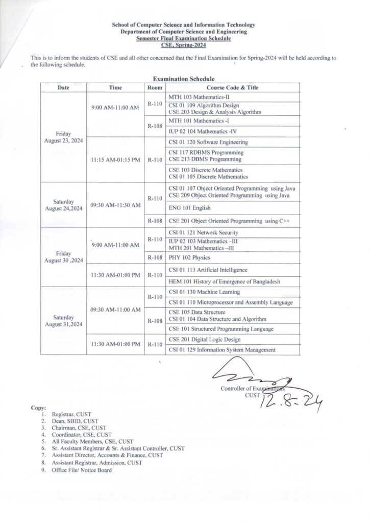 Final Examination for CSE Program, Spring-2024 August 12, 2024 | Notice . Notice - Computer Science & Engineering