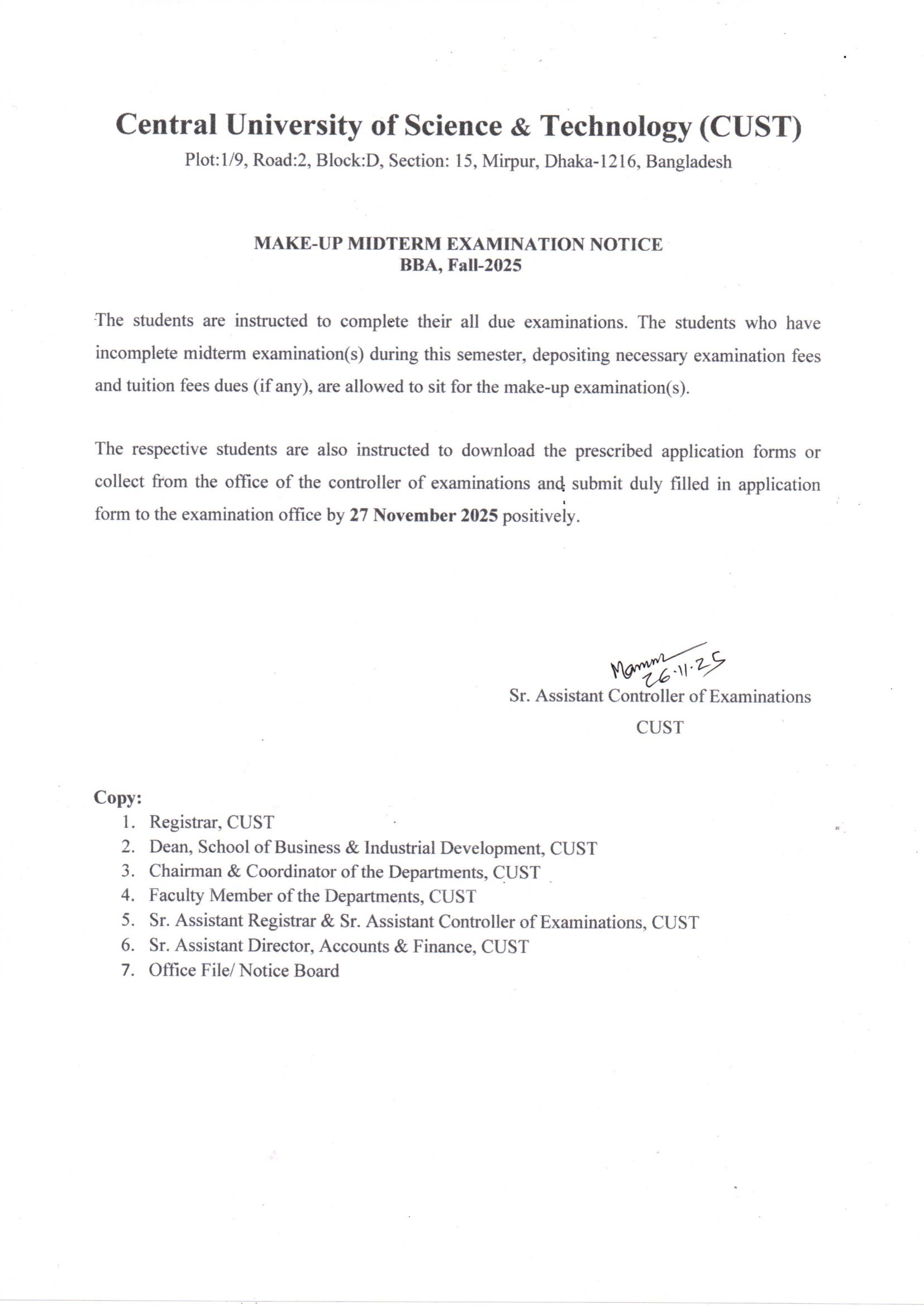 Makeup Midterm Examination Notice for BBA, Fall-2025 November 26, 2025 | Notice . Notice - Business Administration
